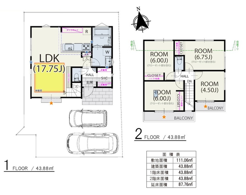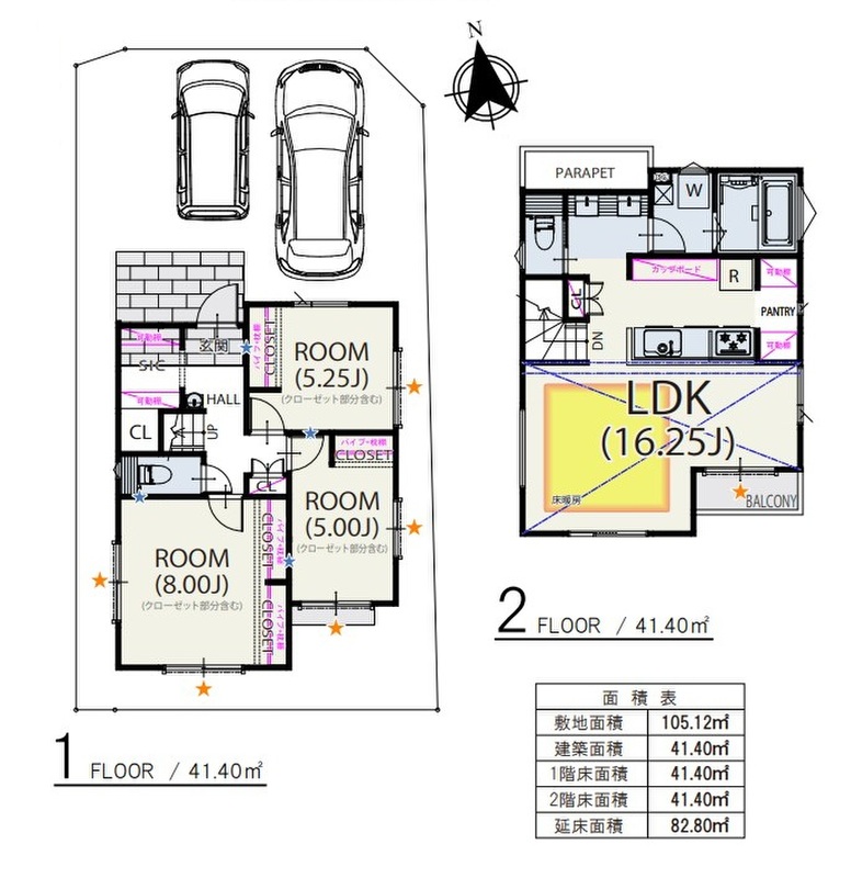 | 建物面積 | 82.80m2~87.76m2 | 土地面積 | 105.12m2~111.06m2 |