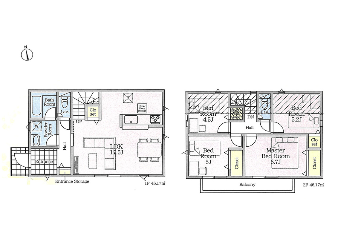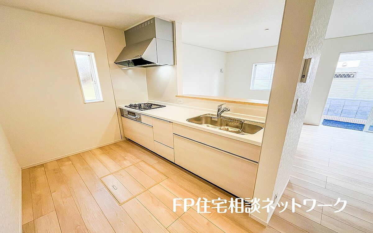 17.5帖の広々LDKと充実収納 家族が集まるLDKは開放的な17.5帖を確保。玄関にはベビーカーも置ける土間収納、全居室にクローゼットを完備し、居住空間をスッキリ広く使えます。