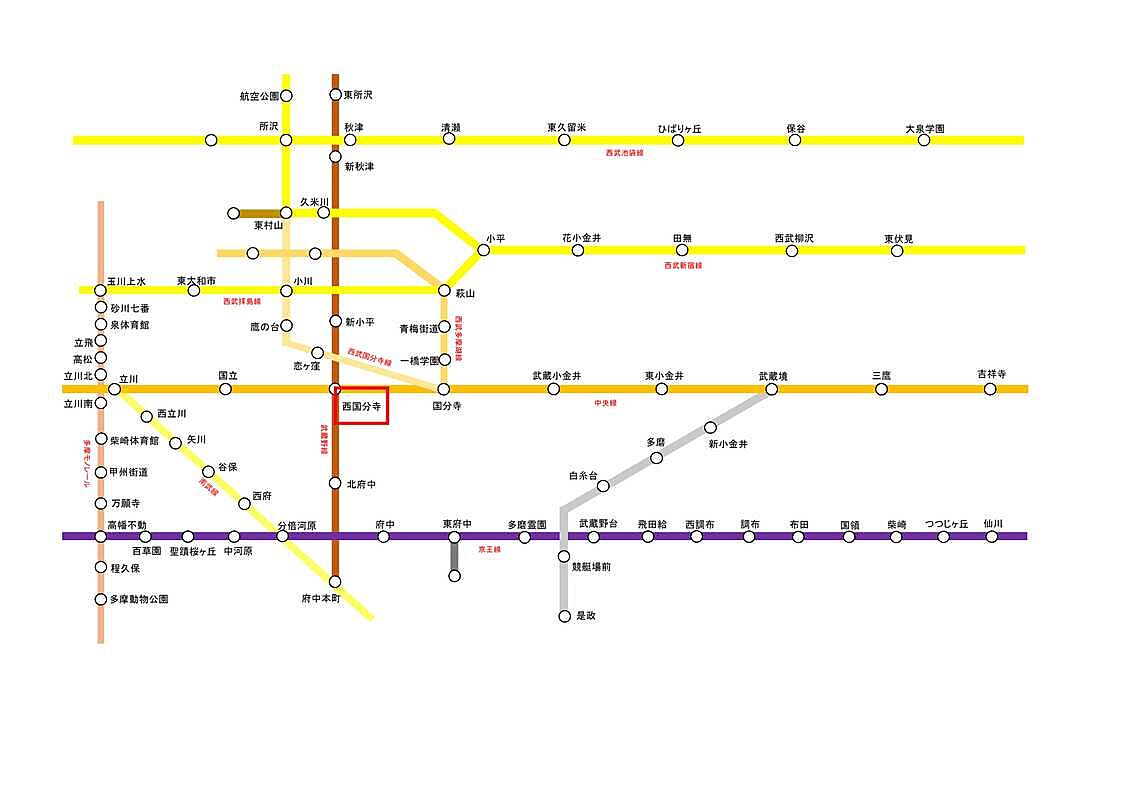 JR中央線「西国分寺」駅 徒歩12分 西武国分寺線「恋ヶ窪」駅 徒歩9分 JR中央線「国分寺」駅 徒歩28分 |