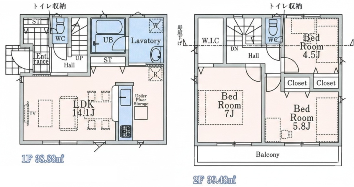 | 建物面積 | 78.36m2~83.42m2 | 土地面積 | 100.02m2・107.52m2 |