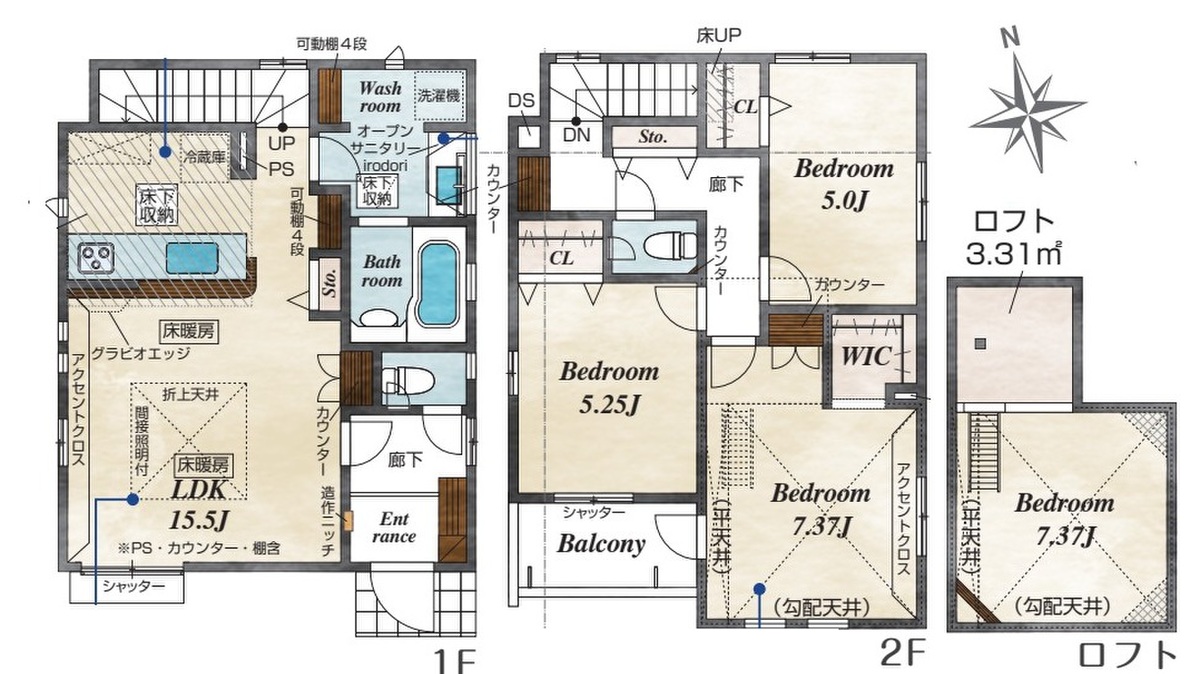 食器洗い乾燥機・床暖房・浴室乾燥機・浄水器を標準装備。あったら嬉しい家事をサポートする設備が満載です!