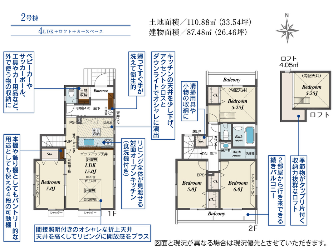 | 建物面積 | 87.48m2 | 土地面積 | 110.88m2 |