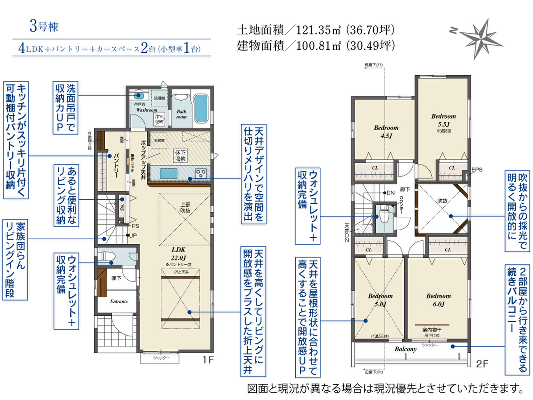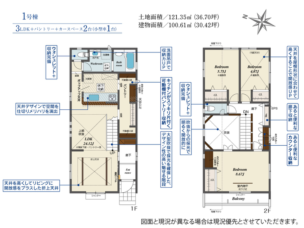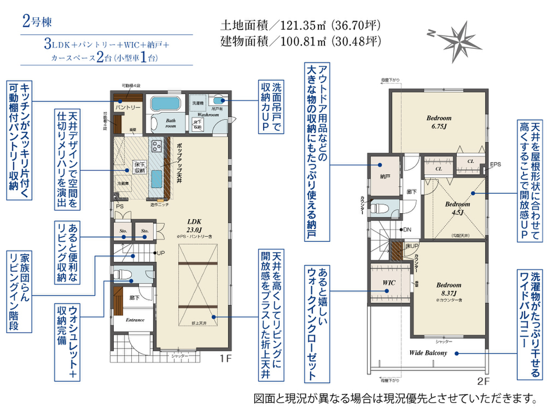 | 建物面積 | 100.61m2~101.64m2 | 土地面積 | 121.35m2 |