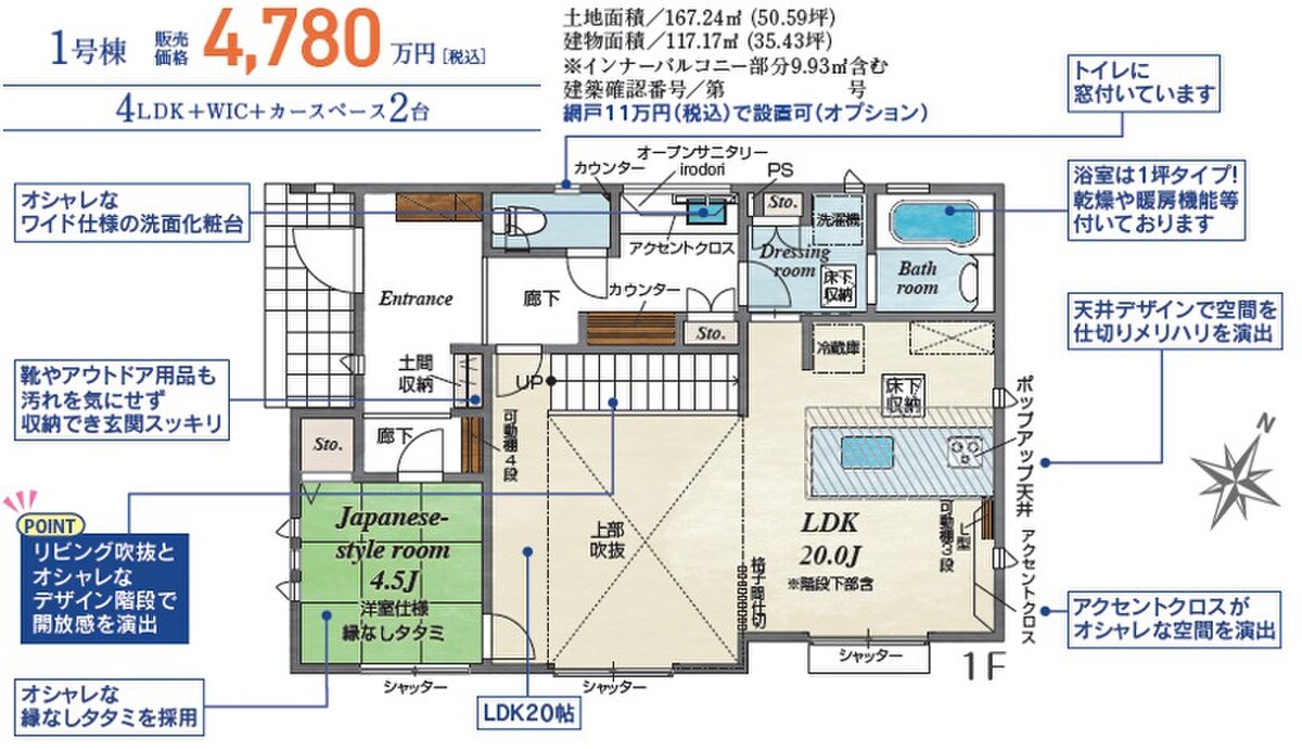 | 建物面積 | 117.17m2 | 土地面積 | 167.24m2 |