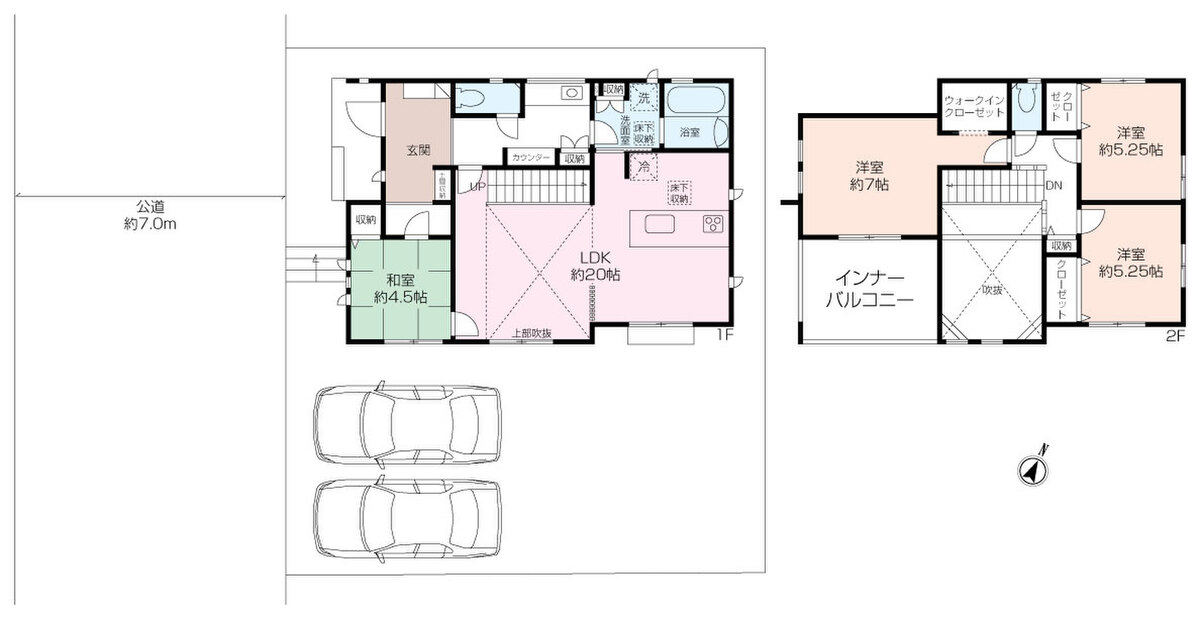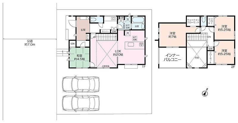 カースペースは並列2台、前面道路は公道7.0mとこちらもゆとりがございます。
