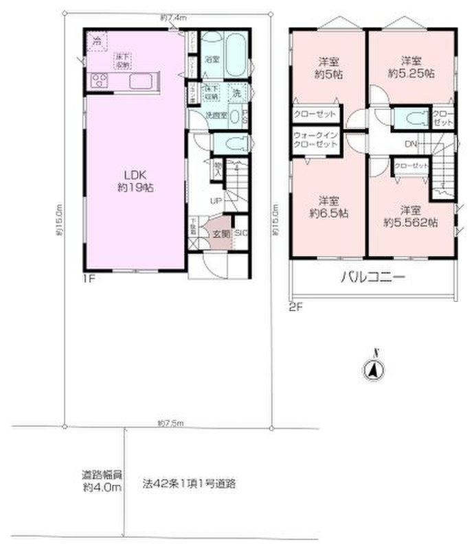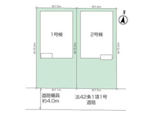 | 駐車場 | 1台 ~ 2台 | 道路の幅員 | 南側4m(間口7.4~7.5m) |