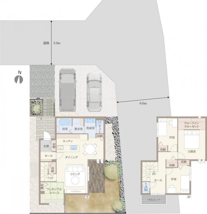 - ※完成予想図やCG合成画像は、門塀・植栽・庭・外観等、実際とは多少異なる場合があります。