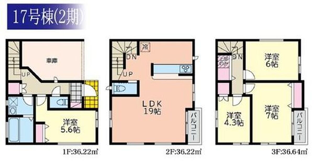 | 建物面積 | 108.88m2~112.21m2(車庫分9.93m2~13.25m2含む) | 土地面積 | 53.83m2~70.44m2 |