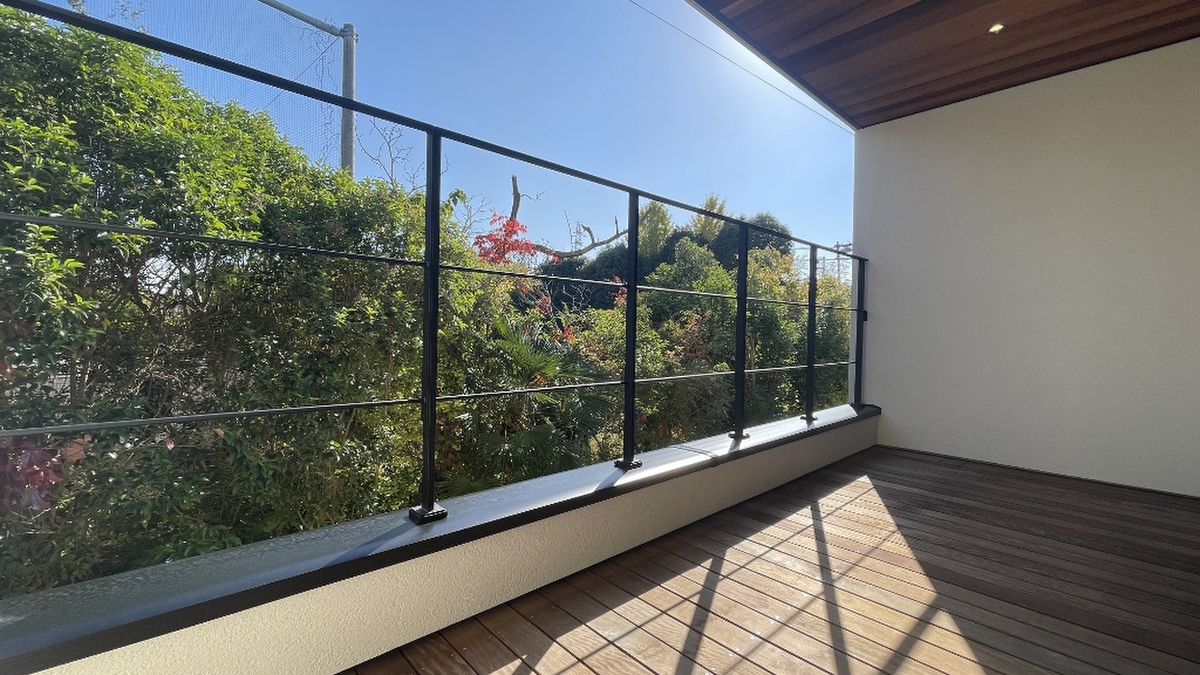 バルコニーには両側に壁を設置し隣家の存在...