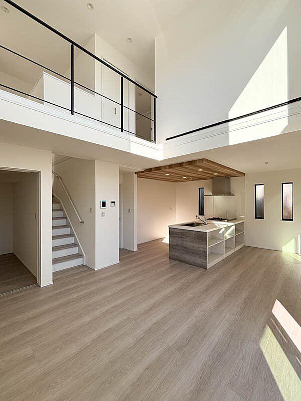 *吹抜けがあるリビングは開放感と自然光で明るい住空間になります