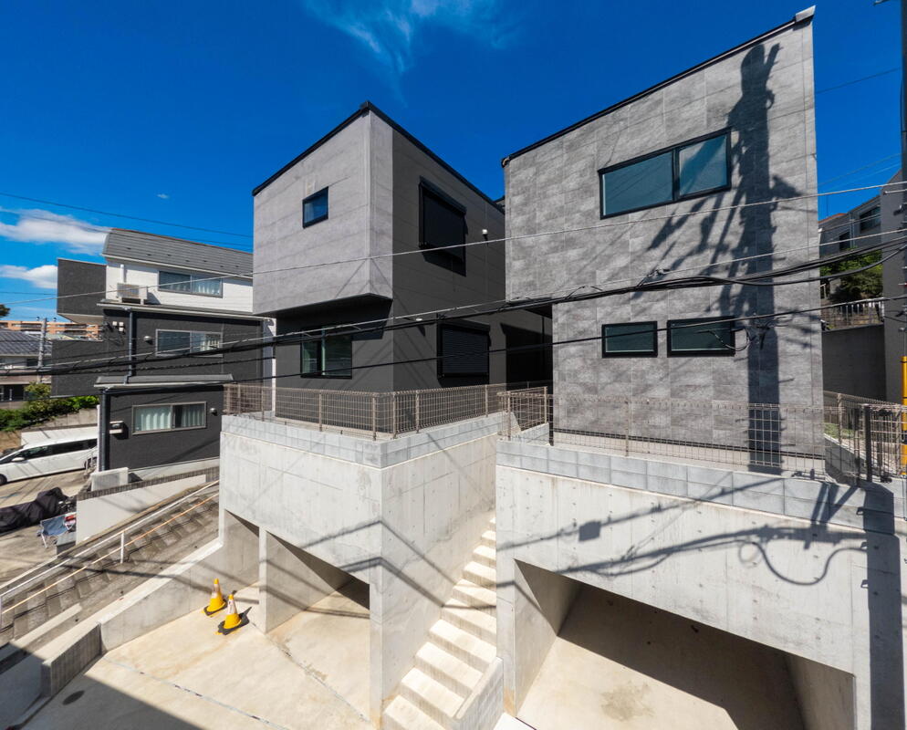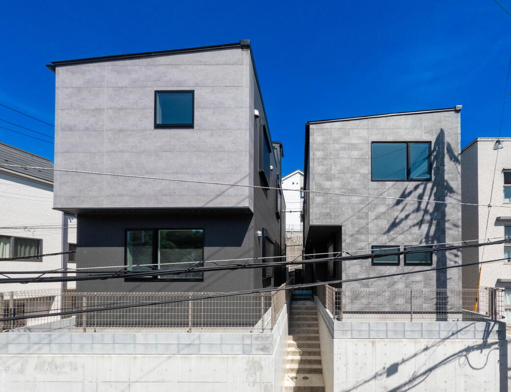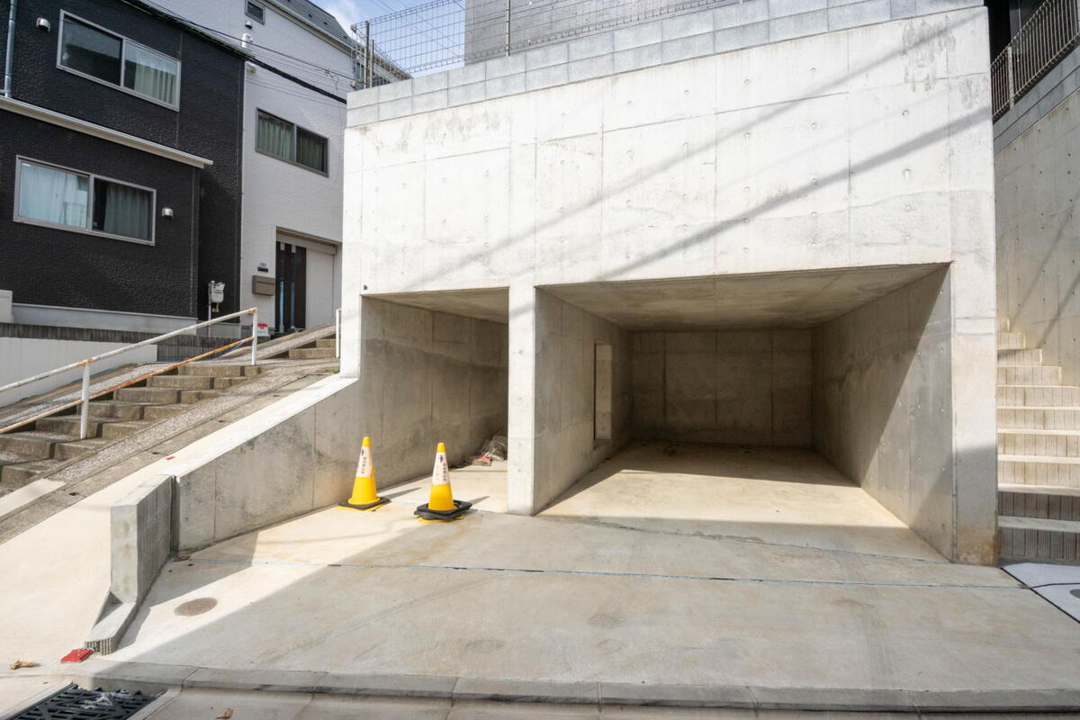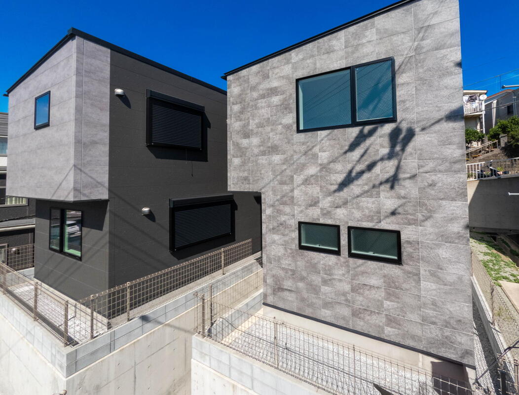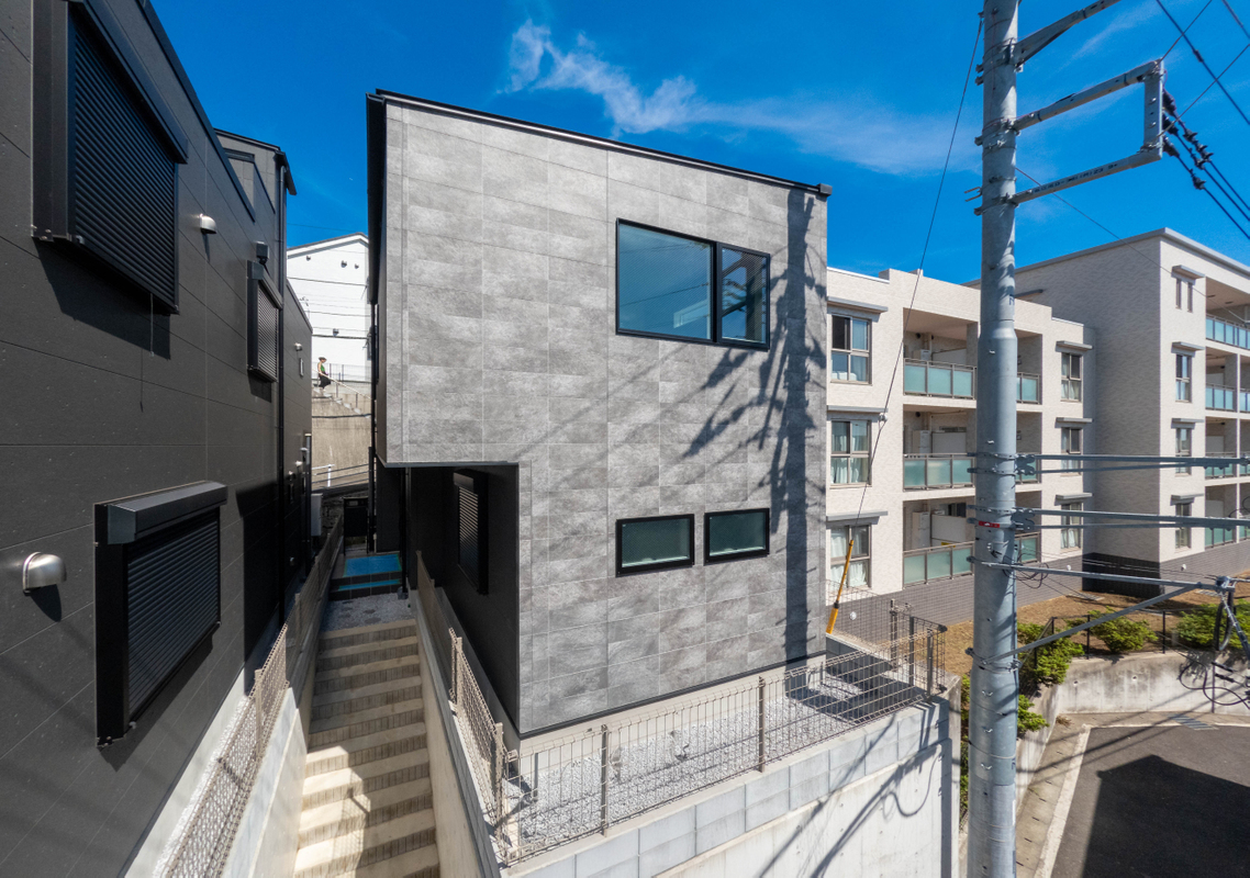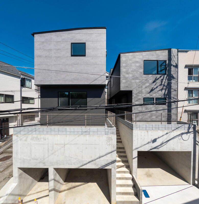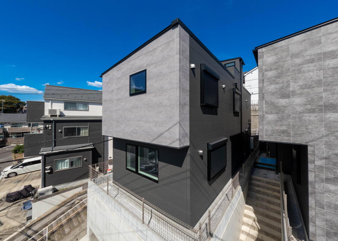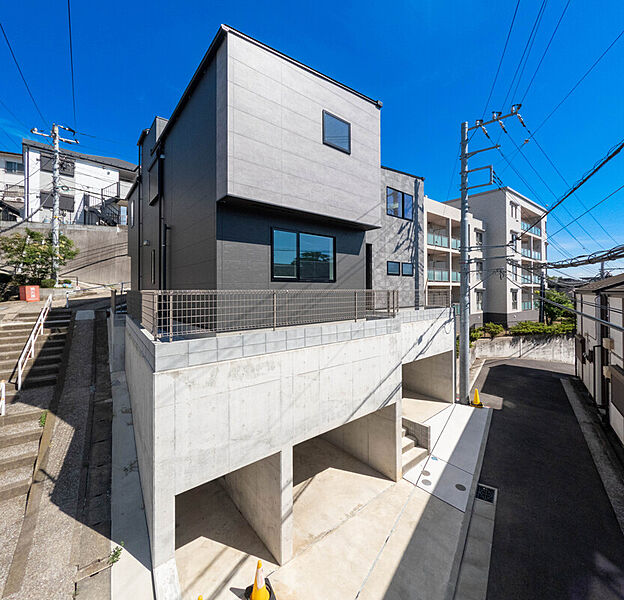地下車庫の上に佇むデザイナーズハウス 外観から目を引くクールな佇まい。
