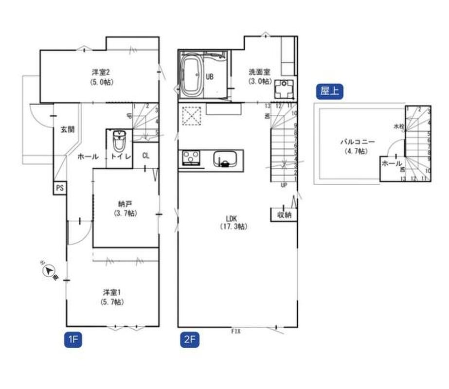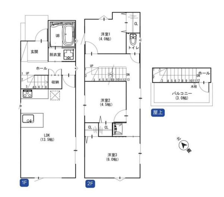 新築一戸建て 駅まで徒歩9分 スカイバルコニーのある一戸建