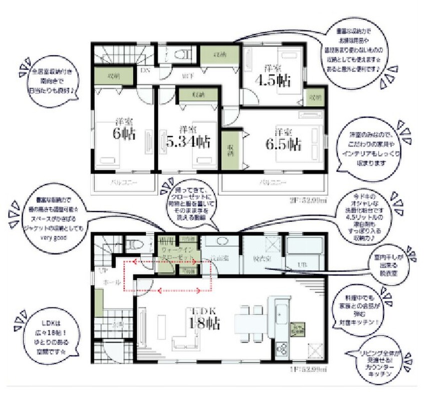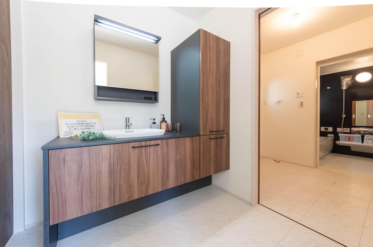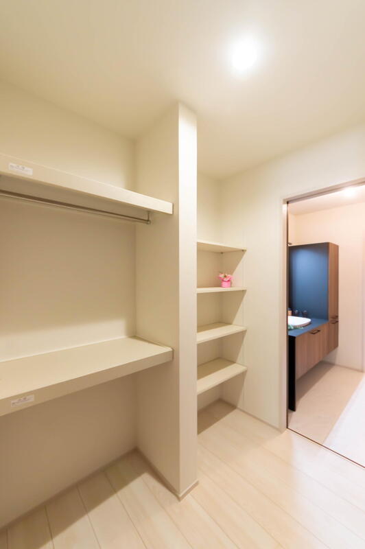 機能的な家事動線と収納:帰宅後すぐにクローゼットへ荷物を預け、そのまま手を洗えるスムーズな動線や、室内干しができる脱衣室など、現代の暮らしに寄り添った設計です