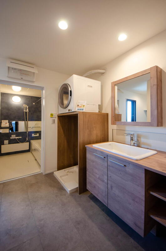 人気のガス衣類乾燥機「乾太くん」を完備し、2階には水回りとファミリークローゼットを集結させました 。洗う、干す、しまうが驚くほどスムーズに完結します 。食洗機付きのオープンキッチンや造作風の洗面台など、デザインと機能性が融合した贅沢な設備も魅力です