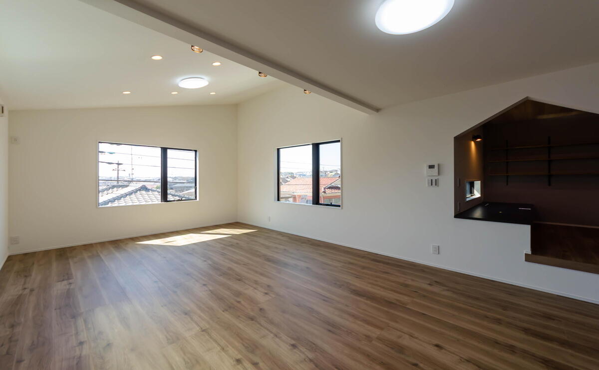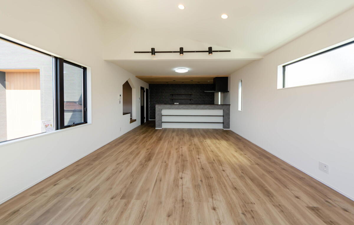 南向きの暖かな陽光が注ぐ18帖もの広々としたLDK 開放感溢れるの勾配天井が、家族の集う時間をより豊かに彩ります
