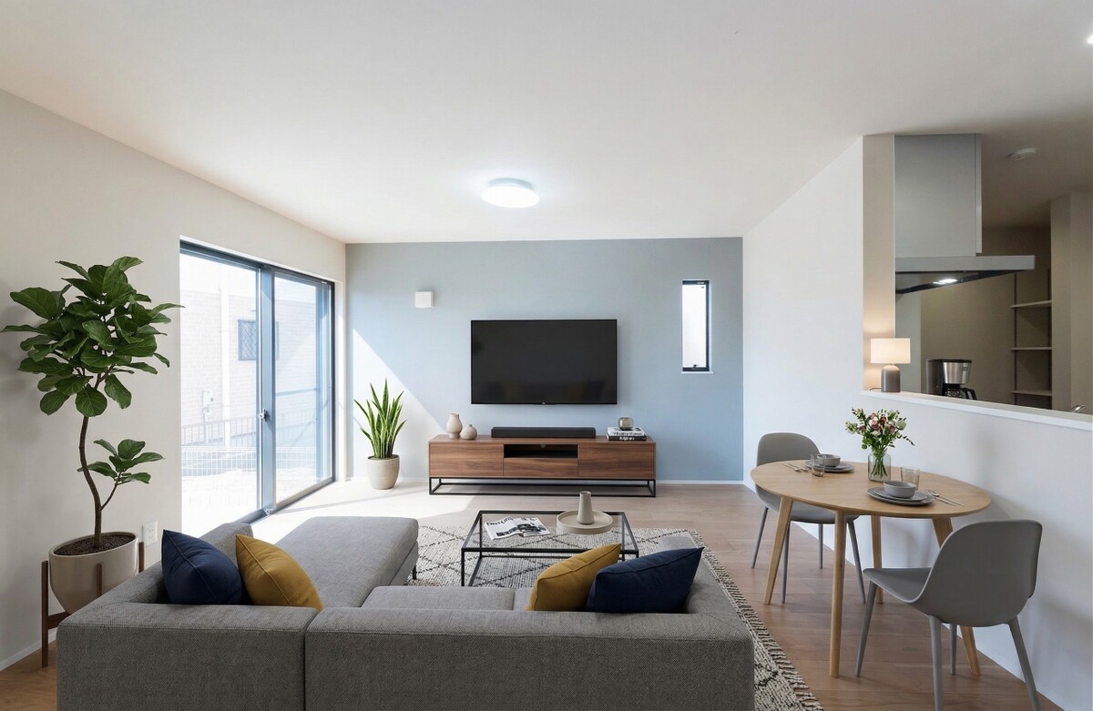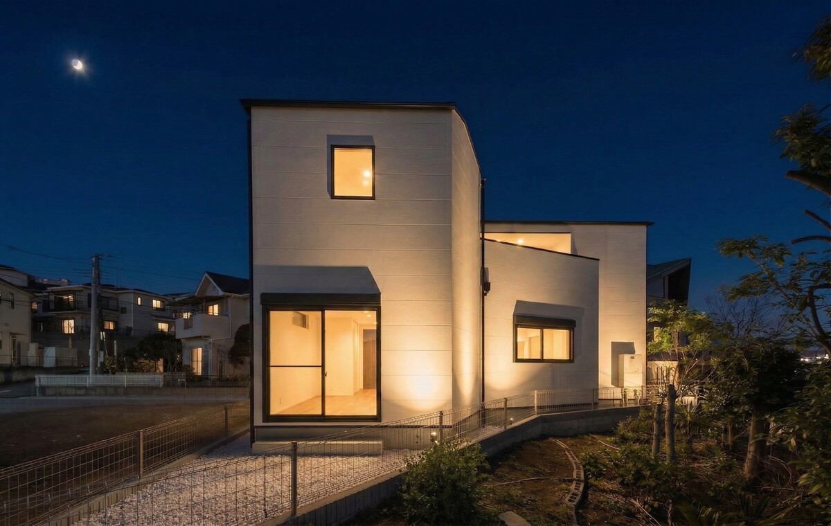 新築一戸建て 碧空と美しい白いフォルムのスタイリッシュハウス ~木漏れ日溢れる家~