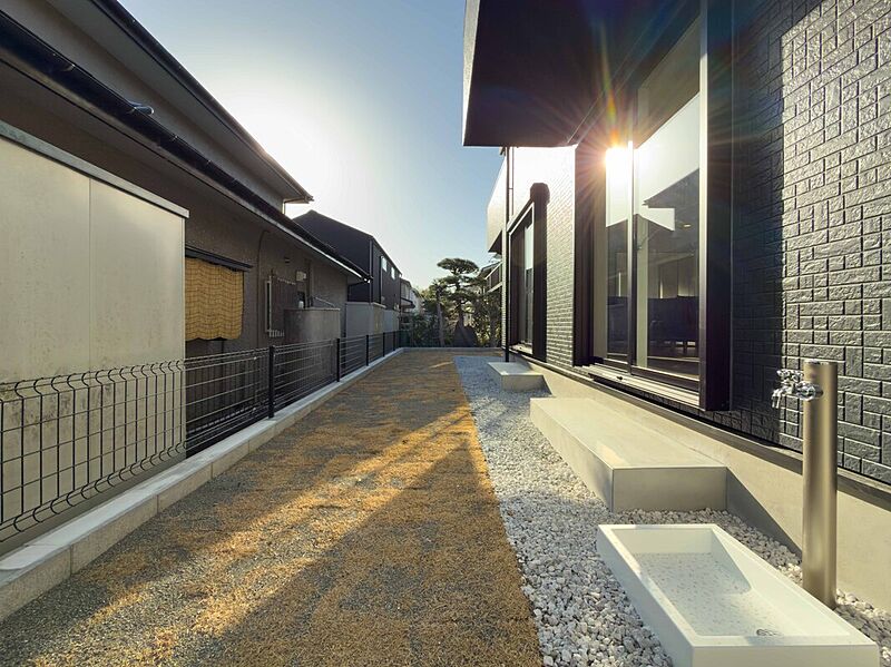 キッチンは家族の気配を感じるフルフラット仕様。土間収納など共働き世帯に嬉しい高い収納力も備えました。庭先は約2.2mのゆとりがあり、ガーデニングや趣味の時間を心ゆくまで楽しめます。