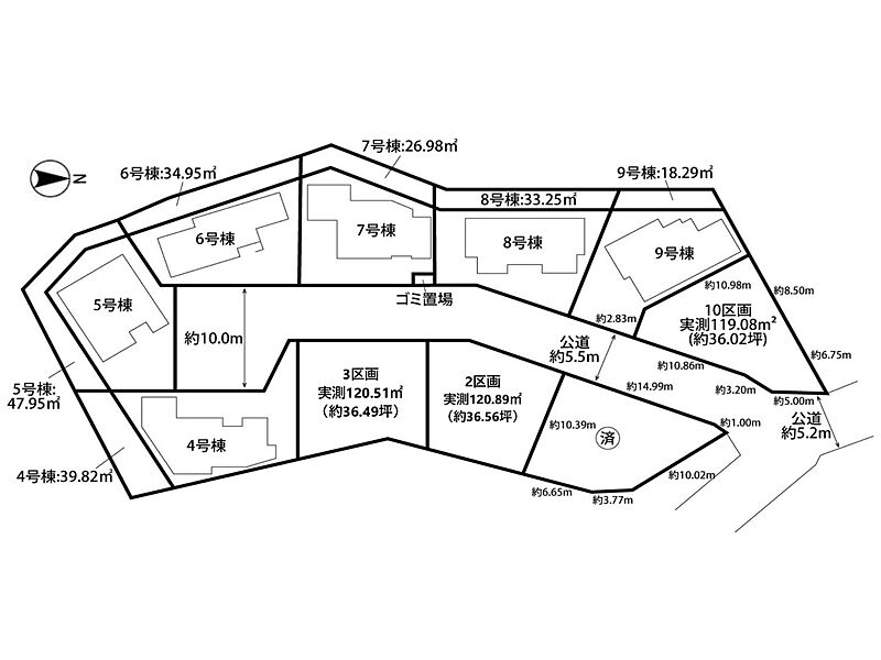 | 駐車場 | 2台 | 道路の幅員 | 8号棟:東5.5m /9号棟:東5.5m /5号棟:北10m /6号棟:東5.5m /7号棟:東5.5m |