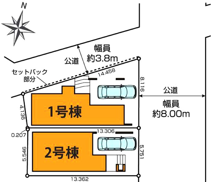 | 駐車場 | - | 道路の幅員 | 2号棟:東8m |