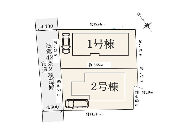 | 駐車場 | 1台 | 道路の幅員 | 2号棟:北西4.3m /1号棟:北西4.3m |