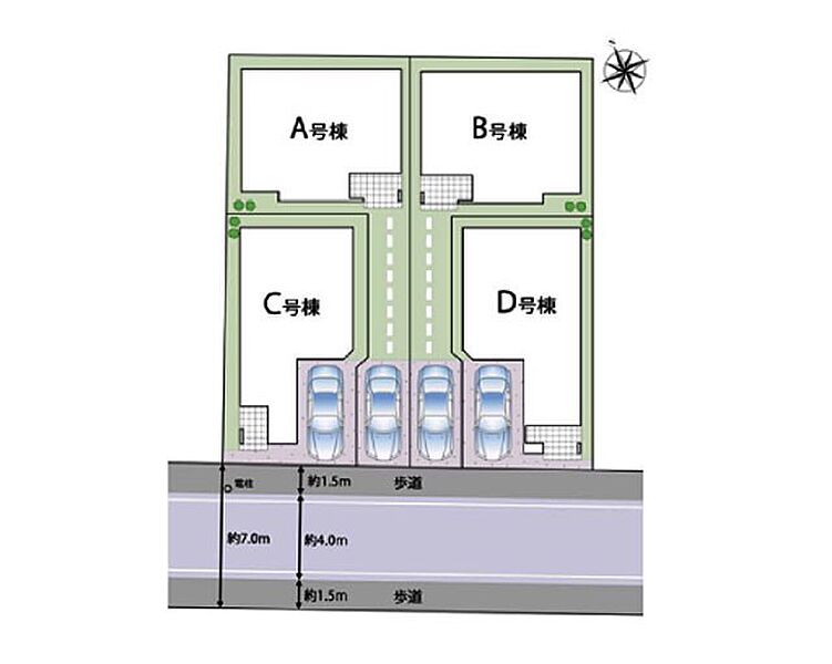 | 駐車場 | - | 道路の幅員 | D号棟:南西7m |