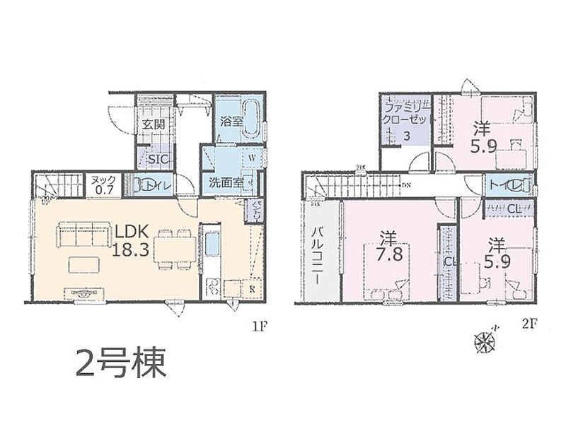 | 駐車場 | 2台 | 道路の幅員 | 2号棟:南西5m /6号棟:北東5m 南西16m |