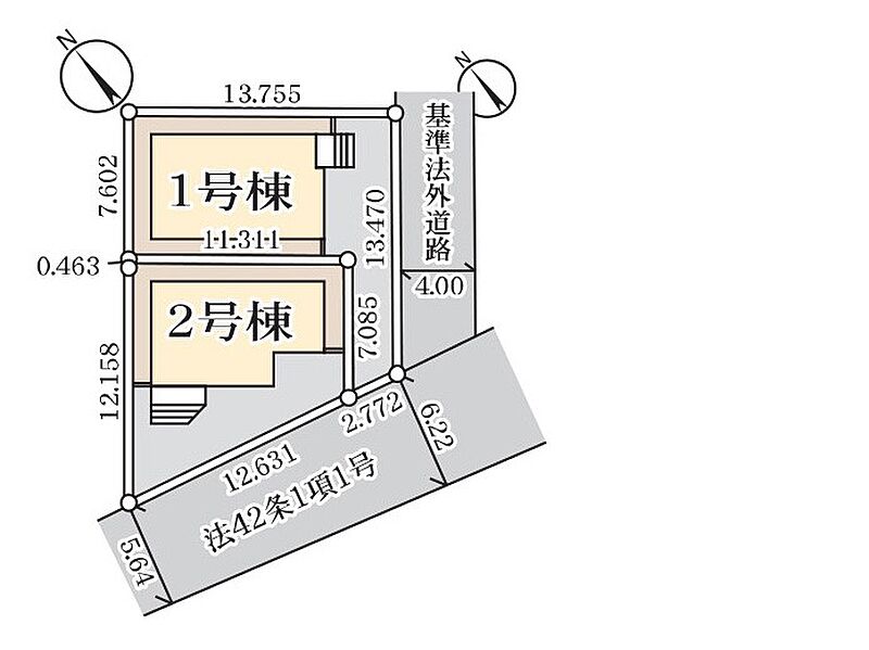 | 駐車場 | - | 道路の幅員 | 2号棟:南5.6m /1号棟:南6.1m |