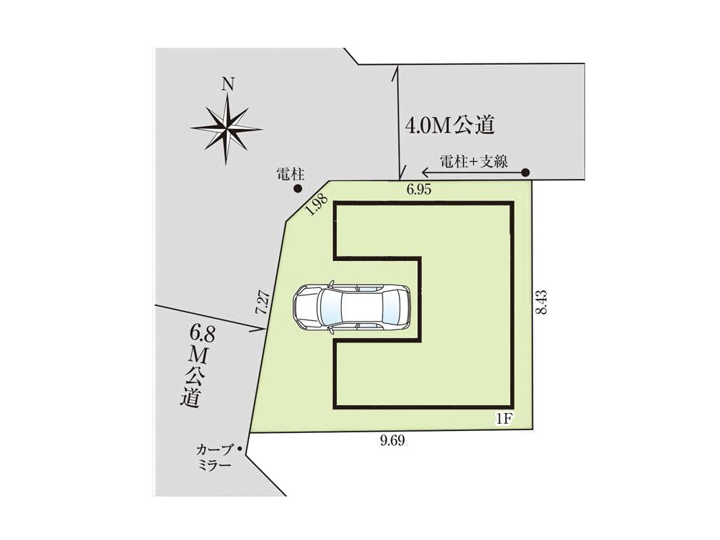 | 駐車場 | 1台 | 道路の幅員 | 西6.8m 公道 北4m 公道 |