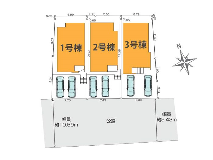 | 駐車場 | 2台 | 道路の幅員 | 1号棟:南10.2m /2号棟:南9.8m |