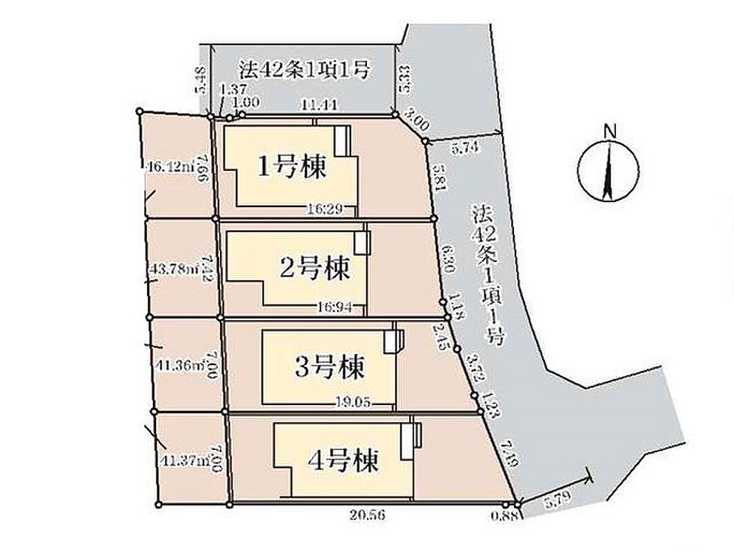 | 駐車場 | - | 道路の幅員 | 3号棟:東5.7m /4号棟:東5.7m /1号棟:東5.7m 北5.3m /2号棟:東5.7m |