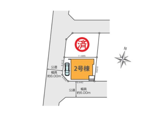 | 駐車場 | - | 道路の幅員 | 2号棟:南6m 西6m |