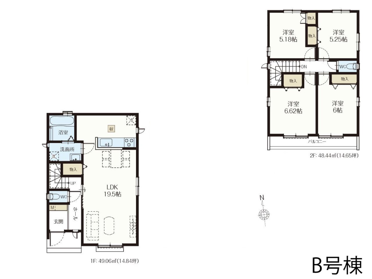 | 駐車場 | 2台 | 道路の幅員 | B号棟:西7.4m |