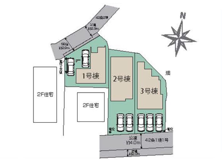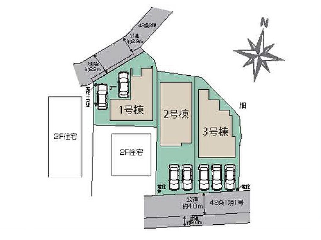 | 駐車場 | 2台 | 道路の幅員 | 1号棟:北2.9m |