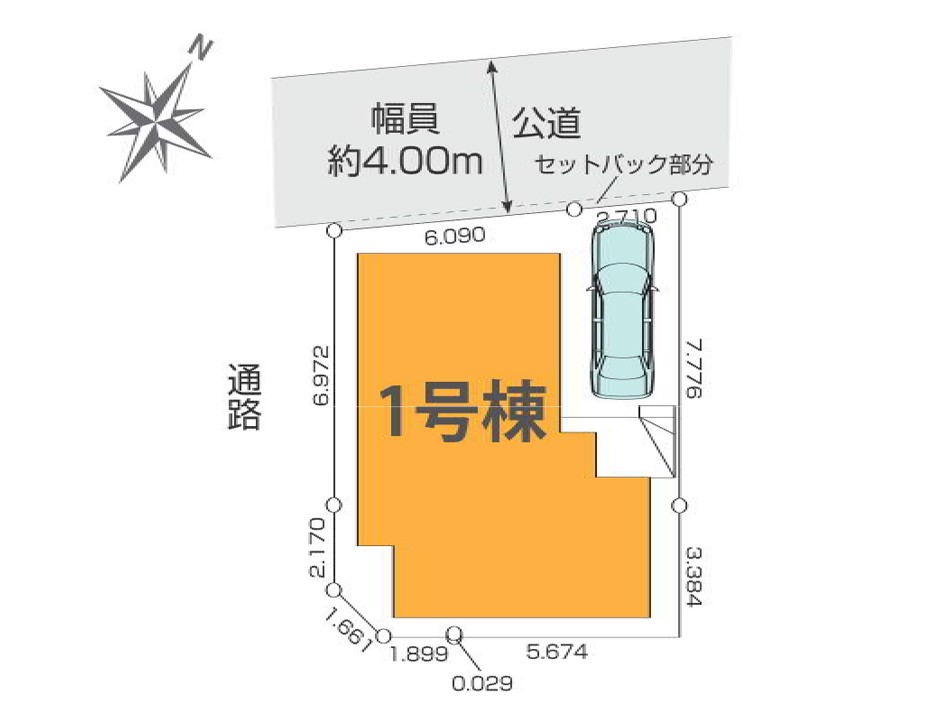 | 駐車場 | 1台 | 道路の幅員 | 北西4m 公道 |