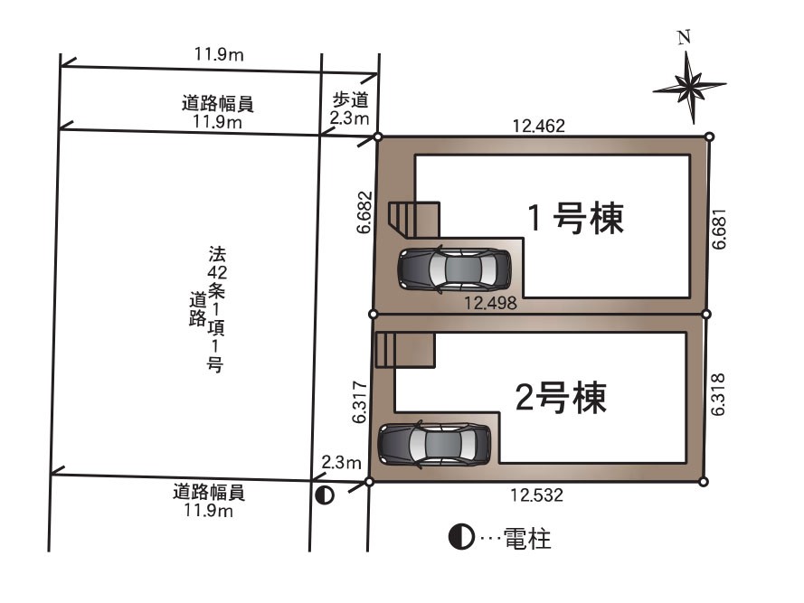 | 駐車場 | 1台 | 道路の幅員 | 1号棟:西11.9m /2号棟:西11.9m |
