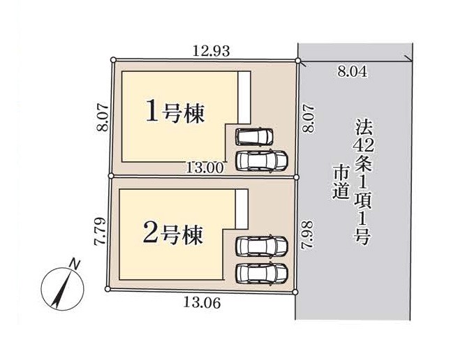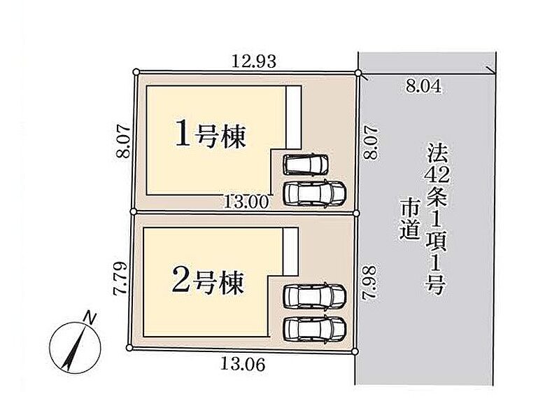 | 駐車場 | 2台 | 道路の幅員 | 1号棟:東8m /2号棟:東8m |