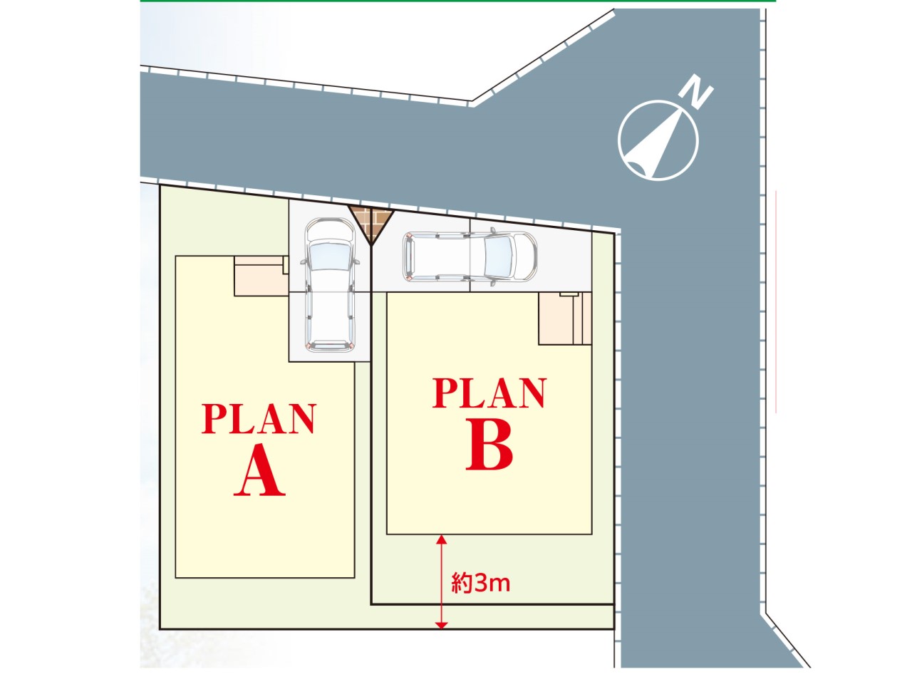 | 駐車場 | 1台 | 道路の幅員 | A号棟:北西4m /B号棟:北東5.4m 北西4m |