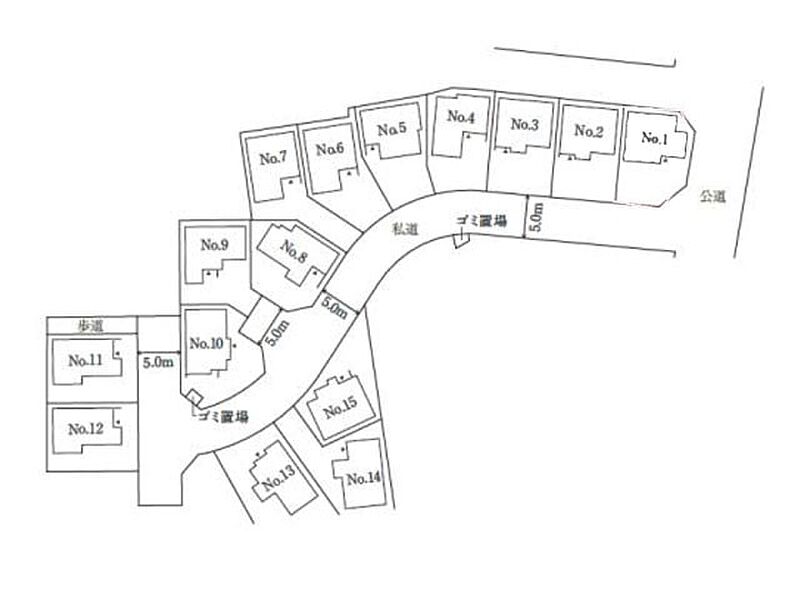 | 駐車場 | - | 道路の幅員 | 4号棟:南5m /12号棟:東5m /9号棟:南東5m /1号棟:東6.1m 南5m |