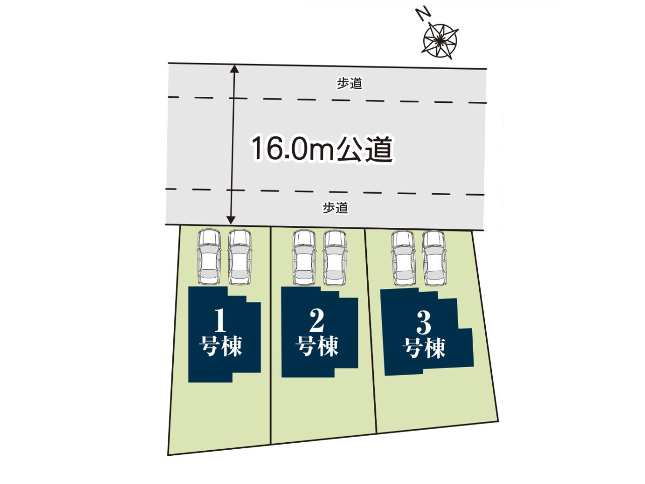 | 駐車場 | 2台 | 道路の幅員 | 2号棟:北東16m /1号棟:北東16m |