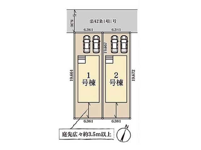 | 駐車場 | 2台 | 道路の幅員 | 2号棟:北8m /1号棟:北8m |