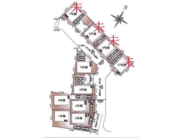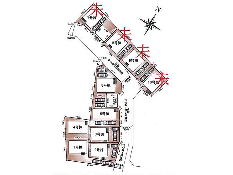 | 駐車場 | 2台 | 道路の幅員 | 2 号棟:東4m /4号棟:東4m /3号棟:東4m /6号棟:東4m 西4m /1号棟:東4m |