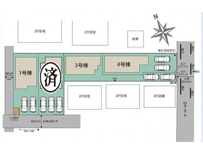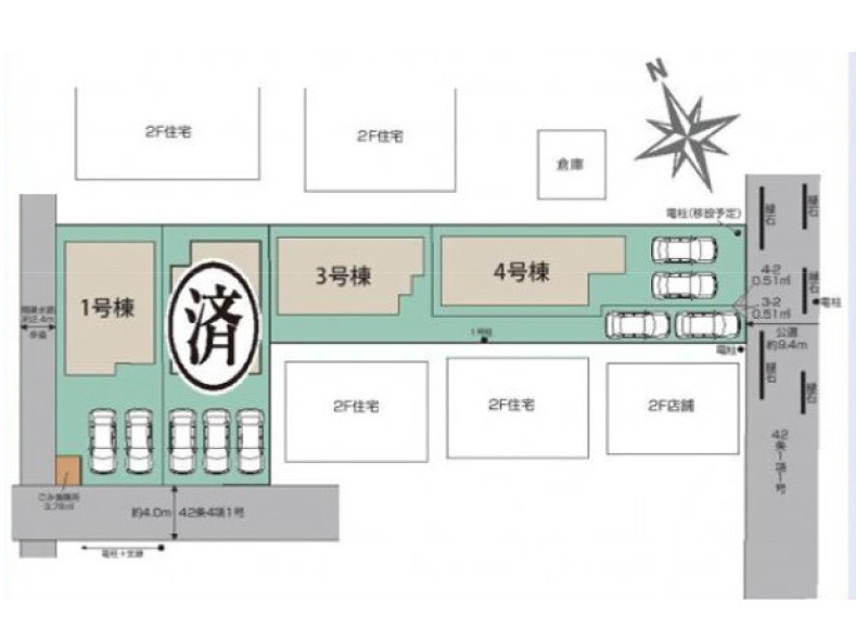 | 駐車場 | 2台 | 道路の幅員 | 3号棟:東9.4m |
