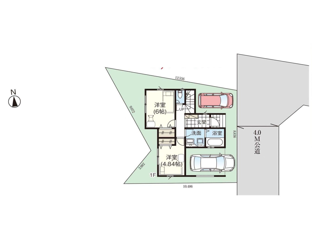 | 駐車場 | 2台 | 道路の幅員 | 東4m 公道 |