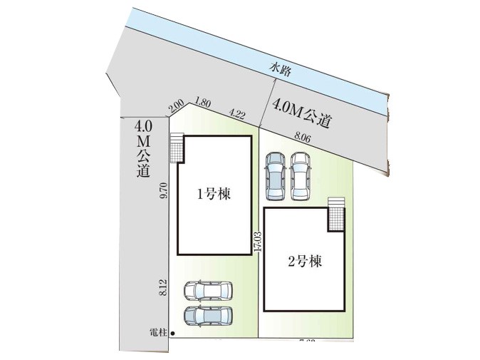 | 駐車場 | 2台 | 道路の幅員 | 2号棟:北4m /1号棟:西4m 北4m |