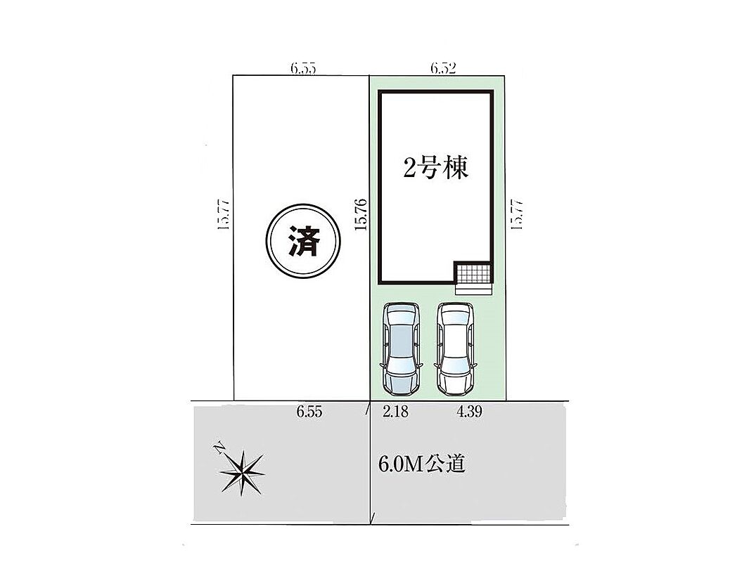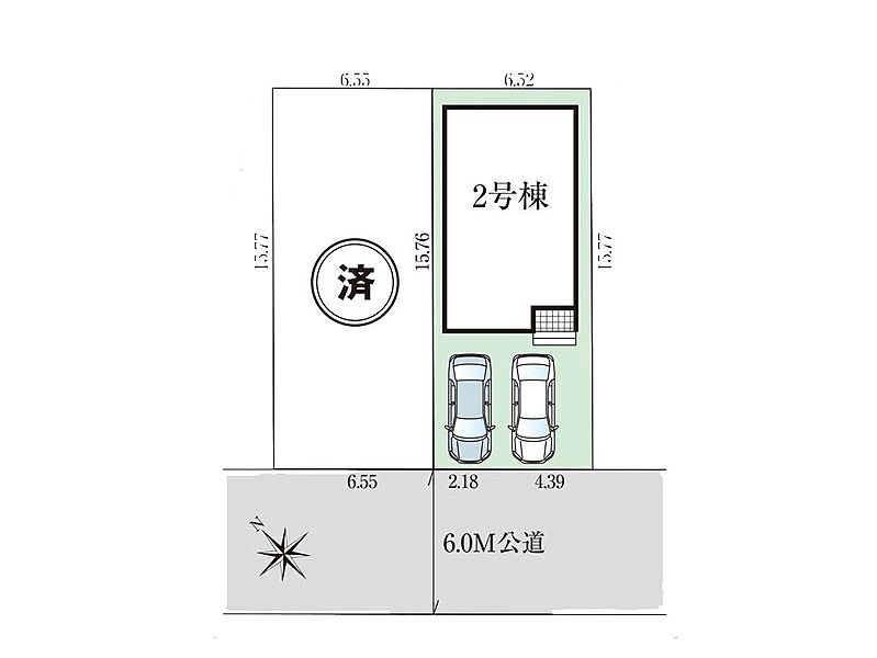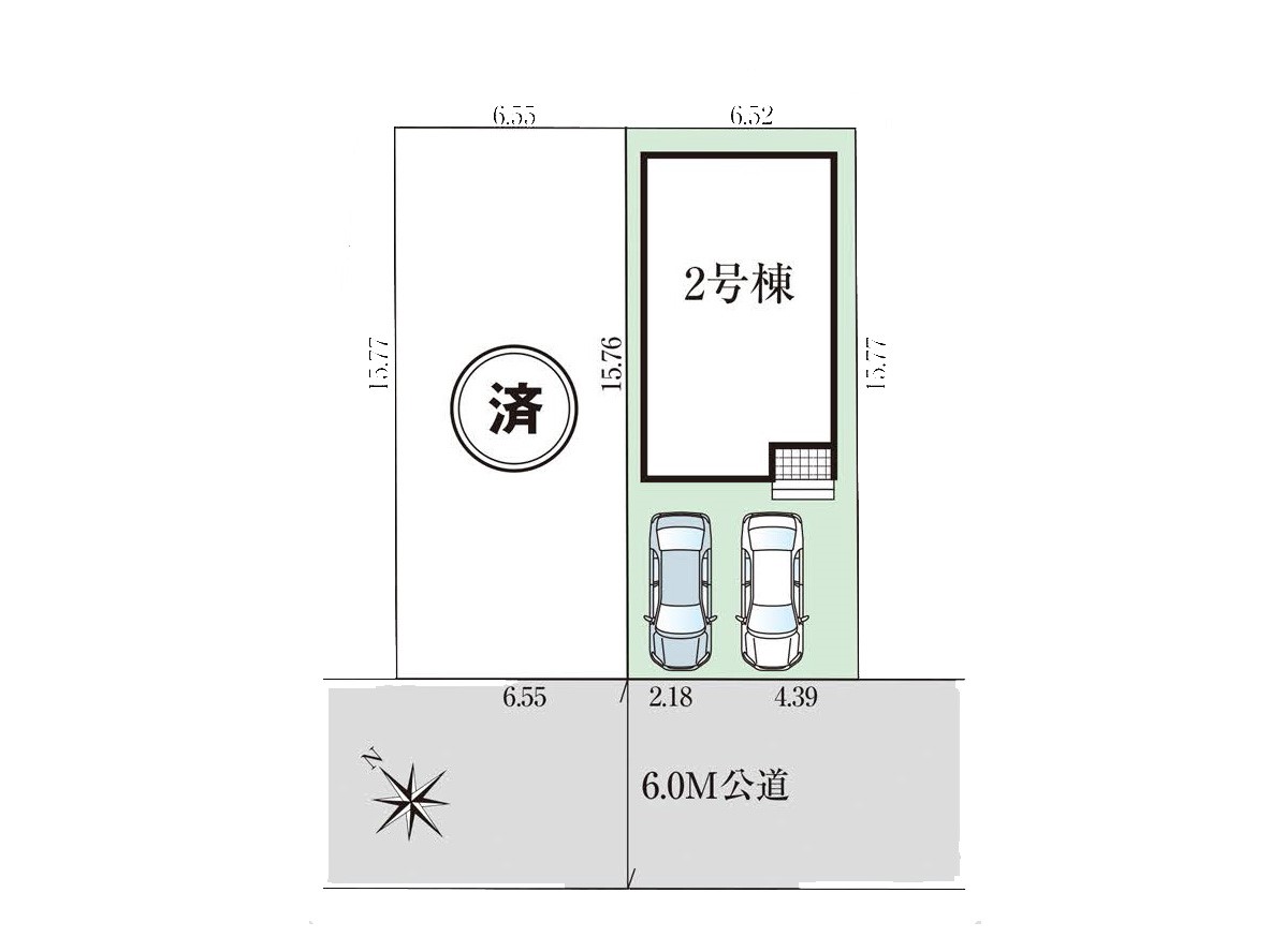 | 駐車場 | 2台 | 道路の幅員 | 2号棟:南西6m |