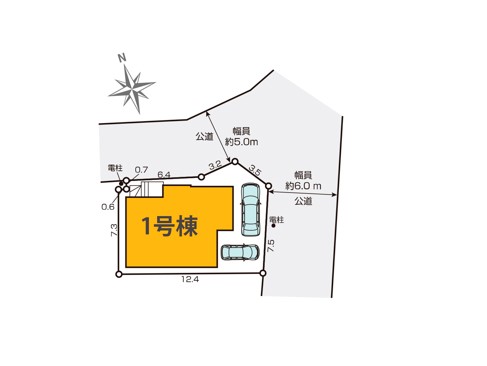| 駐車場 | 2台 | 道路の幅員 | 北5m 公道 南東6m 公道 |