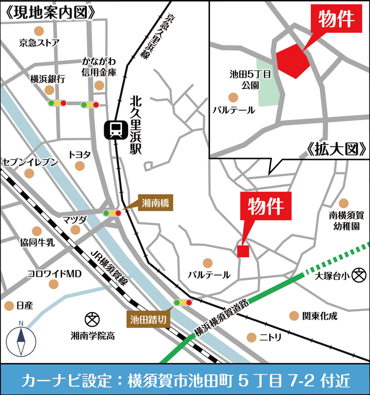 京急久里浜線「北久里浜」駅 徒歩10分 京急久里浜線「新大津」駅 徒歩18分 JR横須賀線「久里浜」駅 バス5分「池田町」バス停 徒歩5分 |