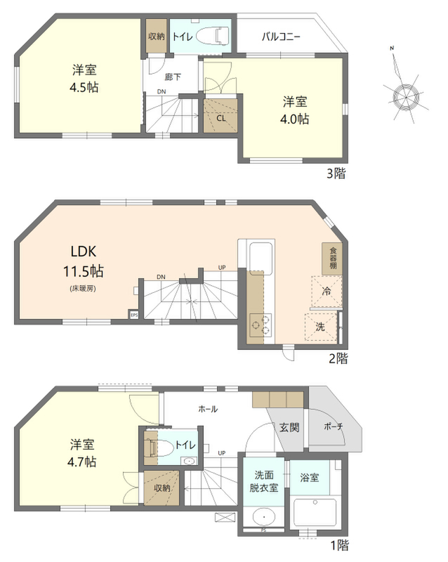 | 間取り | 3LDK | 建物構造 | 木造3階建 |