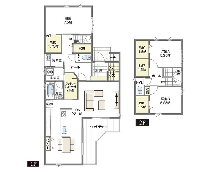 1階に寝室を配置しているので平屋のように暮らすことができ、