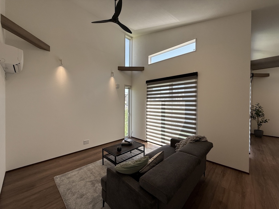 魅力1 高窓からやわらかい自然光が差し込み、落ち着きと明るさを感じる心地よい空間